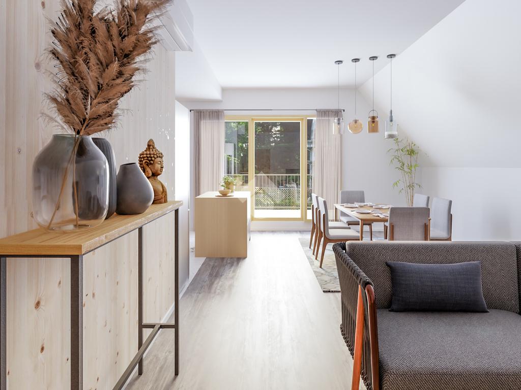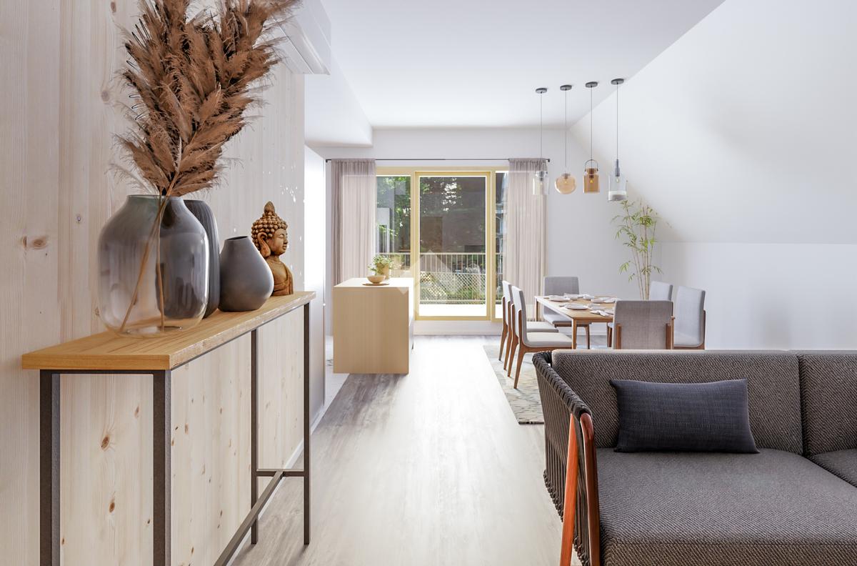 A lakás fűtéséről Mitsubishi levegő-levegő hőszivattyú gondoskodik jelenlét érzékelővel, páratartalom szabályozóval. A lakásban a friss levegőről hővisszanyerős szellőztetőrendszer gondoskodik. A lakás minden gépészetét egy okosvezérlő kezeli (Loxon) a bejáratnál elhelyezett nagyméretű tableten keresztül. Minden beépített anyag elsőosztályú és magas minőséget sugároz.