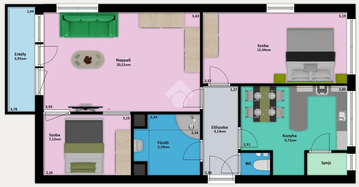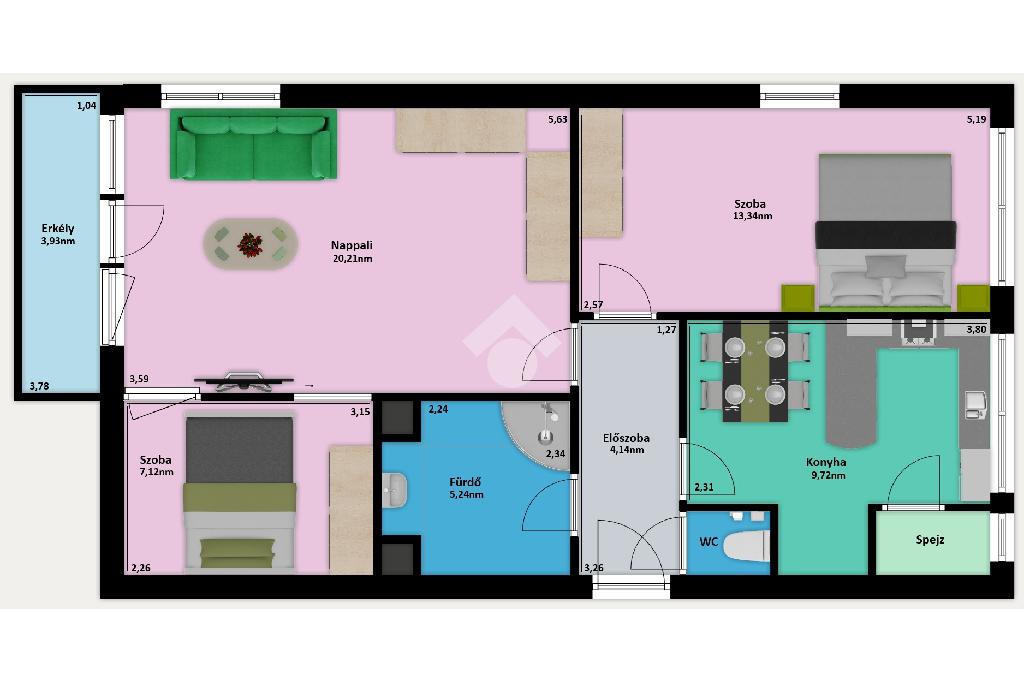 A lakás több extrát is tartalmaz. Ilyen például a központi porszívó, a vízszűrő vagy a riasztó.