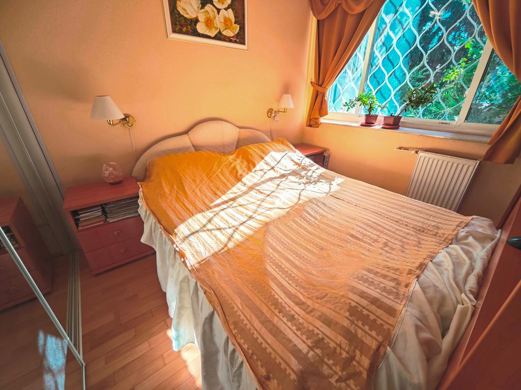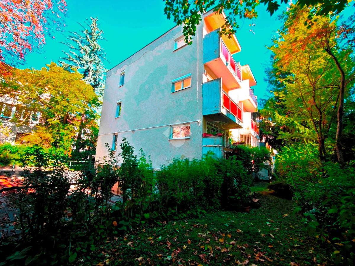 Hűvösvölgyi úton, közel a Szerb Antal utcához, egy parkosított területen található, az úttól távol eső társasházban, egy magasföldszinti, kertre néző, jó állapotú, jó elosztású, erkélyes, kertkapcsolatos lakás. A lakás minden helysége ablakos, a konyhában található egy kis étkezősarok, és egy ablakos kamra is. 2015-ben történt a teljes körű felújítás, beleértve a vezetékeket, és a fűtésrendszert, mely kombicirkó. A nappaliból nyíló loggia Dk-i tájolású, és oldalkert irányába néz, ahonnan egyből le tudunk menni a kertbe. Pincetároló és 1 autó számára kerten belüli gépkocsibeálló tartozik a lakáshoz. Ezenkívül tartozik egy 15nm-es garázs is a lakáshoz, melynek vételára +18M Ft.